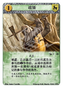 功能说明 响应:在你赢得一次所附属角色参与的权力争夺争夺后,从场中选择并弃除一名拥有1枚或更多权力标记的参与争夺的角色。
