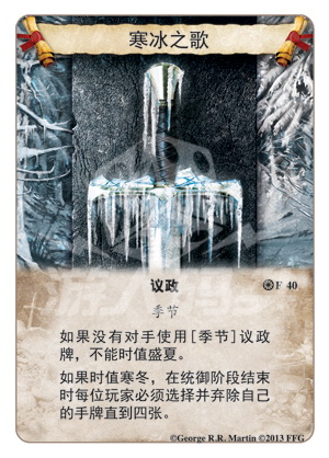 如果时值寒冬,在统御阶段结束时每位玩家必须选择并弃除自己的手牌直到四张。