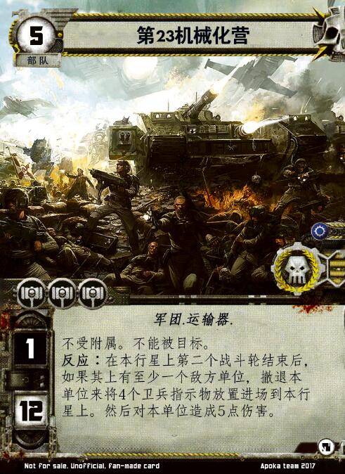 反应:在本行星上第二个战斗轮结束后,如果其上有至少一个敌方单位,撤退本单位来将