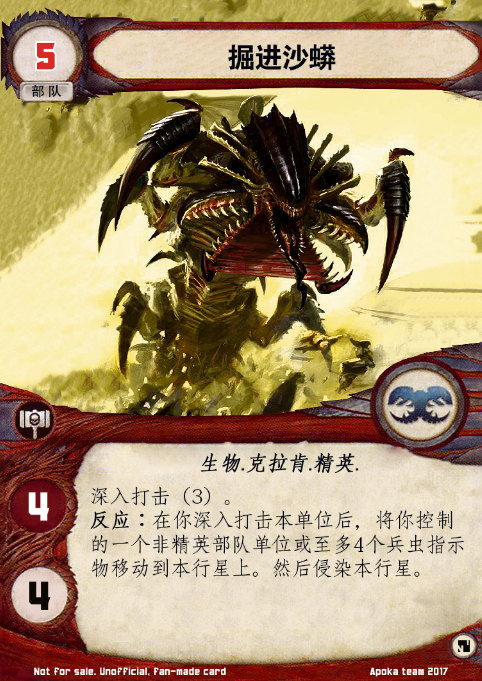 你控制的一个非精英部队单位或至多4个兵虫指示物移动到本行星上。然后侵染本行星。